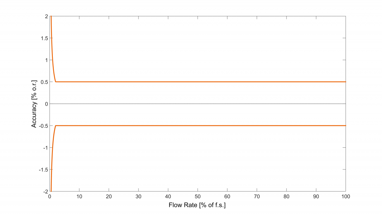 基本精度(體積流量)³ | 流量范圍的±0.4 % (可選: *高到 ±0.15 %) |